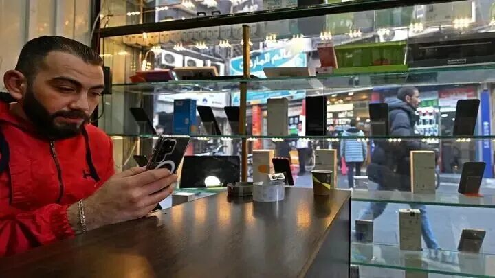 ▲2025年1月12日,一名顾客在大马士革塔市场一家商店体验手机。(图源:路透社)